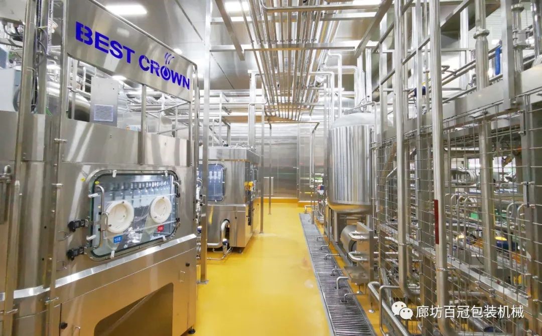 金虎辭舊歲,玉兔迎新春。春節期間,百冠總裝車間多條無菌線同時進行總裝試機,其中兩條無菌線分別為南寧嘉能可食品股份有限公司訂購的28000瓶/小時多功能(含氣/非含氣兩用)吹灌旋無菌線和中山市佳佳樂食品飲料有限公司訂購的18000瓶/小時新型無菌整線。